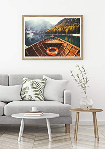 Panorama Poster Stampe da Parete Lago di Braies 50 x 35 cm - Stampato su Carta 250 gr Alta qualità con Passepartout - Quadri Moderni Soggiorno - Stampe da Parete Moderne - Decorazione Parete
