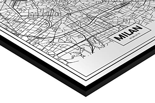 Panorama Quadro Incorniciato Mappa di Milano 21x30 cm - Stampato su Carta Rigida di Alta qualità - Quadri Moderni Soggiorno - Include Cornice - Decorazione Parete