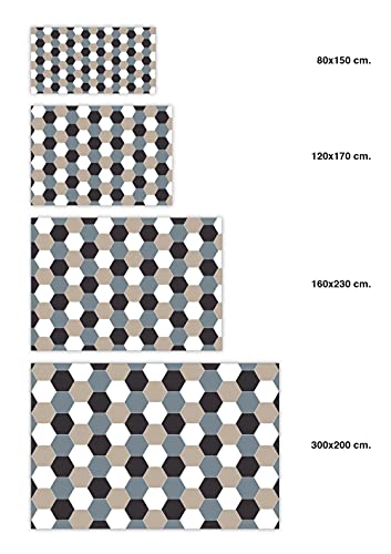 Panorama Tappeto Vinile Mosaico di Esagoni Tono Blu 120x160 cm - Tappeto da Cucina Piastrelle Antiscivolo - Tappeto Moderno Salotto - Tappeto Lavabile Ignifugo - Tappeto Grande - Tappeto PVC