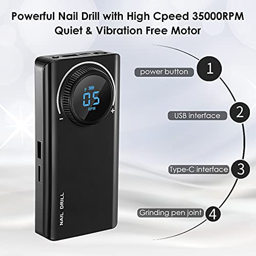 PaNt Fresa per Unghie Professionale 35000 rpm Portatile Limetta Elettrica per Unghie con Display a LCD, Velocità Regolabile Trapano Elettrico Gel/Smalto per Manicure, Pedicure, Casa e Salone DIY