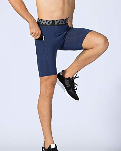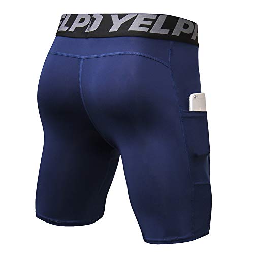 Pantaloncini a compressione da uomo da palestra, corsa, pantaloncini corti traspiranti per allenamento fitness con tasche per telefono