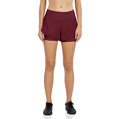 Pantaloncini da Corsa Donna,Pantaloncini Sportivi Estivi 2 in 1 Shorts Donna Sportivi a Vita Alta Pantaloni Corti Donna per Corsa Yoga Fitness con Tasche con Cerniera Interna Rosso M
