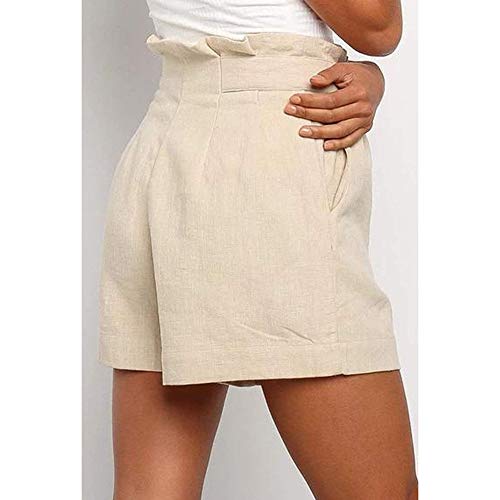 Pantaloncini Corti Donna, Vita Alta Bermuda Sportivi Estate Shorts per Palestra Fitness Jogging Running Yoga Leggins Pantaloncini Corti Beige 2XL