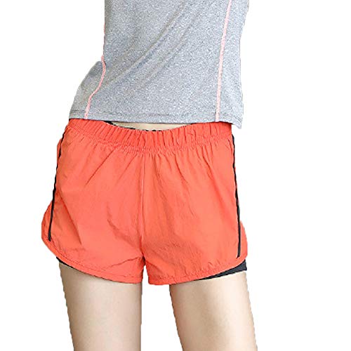 Pantaloncini 2 in 1, Donna Sportivi Estate Shorts per Palestra Allenamento Fitness Jogging Running Yoga Leggins Pantaloncini Corti Arancione S