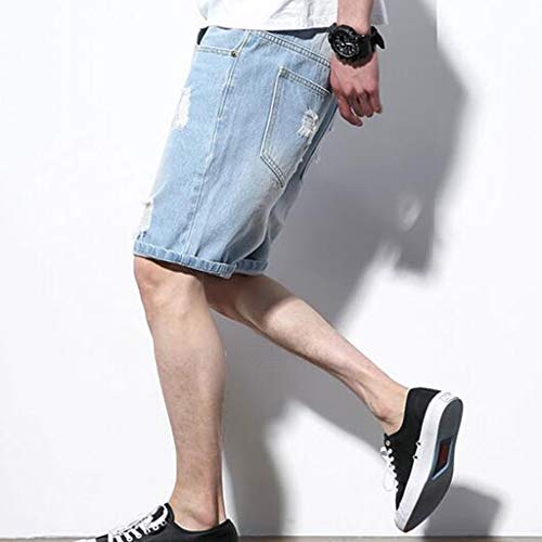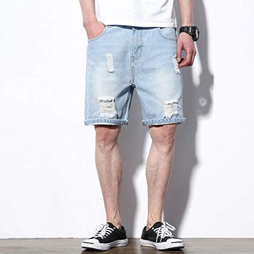 Pantaloncini Jeans Casual Distressed Bottoni Stretch Strappati Repair Rips Fashion Tascabili Grandi Dimensioni Pocket Casual Slim Pantaloni Sportivi Uomo (4XL,5- Blu)