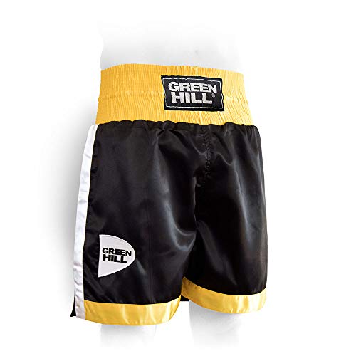 PANTALONCINI PUGILATO GREEN HILL PIPER BOXE PUGILE PROFESSIONISTA E DILETTANTE (Nero/giallo/bianco, L)