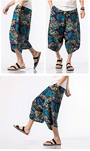 Pantaloncini Uomo Donna Estivi Boho Retro Stampa Cotone Lino,Sottile Vita Elastica Larghi Aladdin Etnici Hippie Pantaloni 3/4 Shorts (6#,M (Label L))