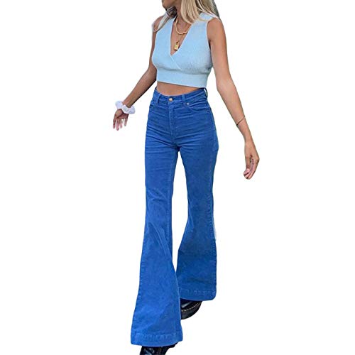 Pantalone Svasato in Velluto a Coste da Donna Vintage Solido a Vita Alta con Bottoni a Gamba Larga Pantaloni Lunghi Y2K Streetwear (Blu, M)