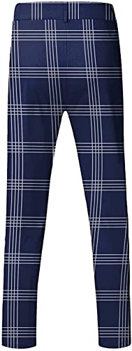 Pantaloni da Abito da Uomo Attillati Plaid a Testa Piatta Elasticizzati Pantaloni a Matita Affusolati Pantaloni Eleganti con Tasche, Pantaloni da Uomo in Twill Scozzese (Blue,M)