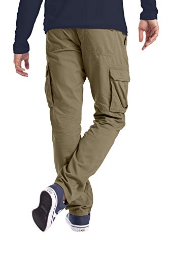 Pantaloni cargo da uomo, 6 tasche, 100% cotone, per il tempo libero, cachi, 32W x 32L