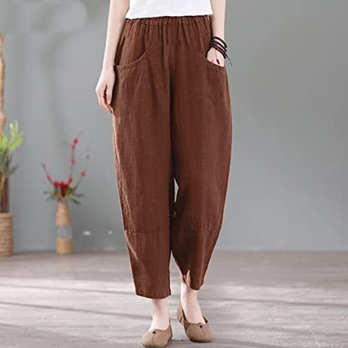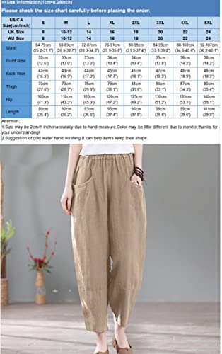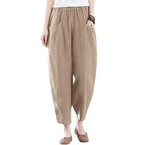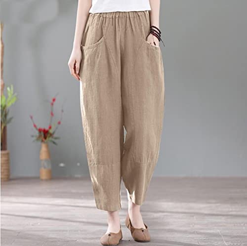 Pantaloni Casual da Donna in Cotone e Lino Pantaloni da Tasca a Vita Alta Semplici in Tinta Unita Pantaloni Larghi Super Comodi di Grandi Dimensioni Cachi XXL