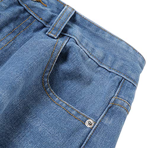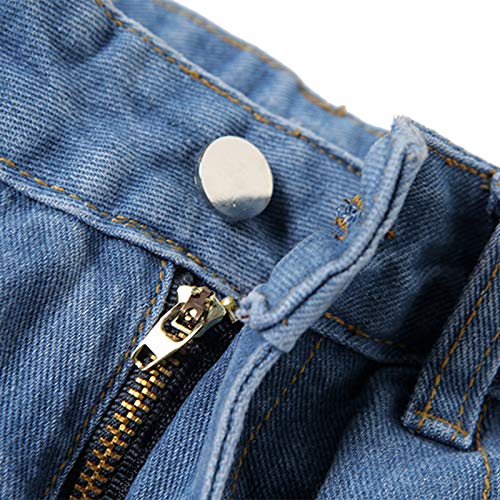 Pantaloni in Denim da Donna Jeans Dritti a Vita Alta Pantaloni Strappati a Gamba Larga all-Match con Tasche Cerniera Bottoni Tinta Unita Casual Streetwear Adulti (Blu, XL)