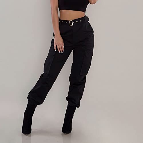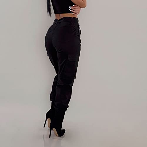 Pantaloni da donna casual cargo military pantaloni solidi da combattimento, pantaloni militari, da donna, blu, Nero, XL