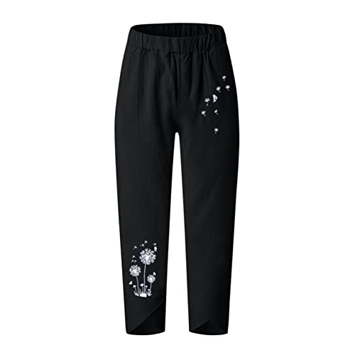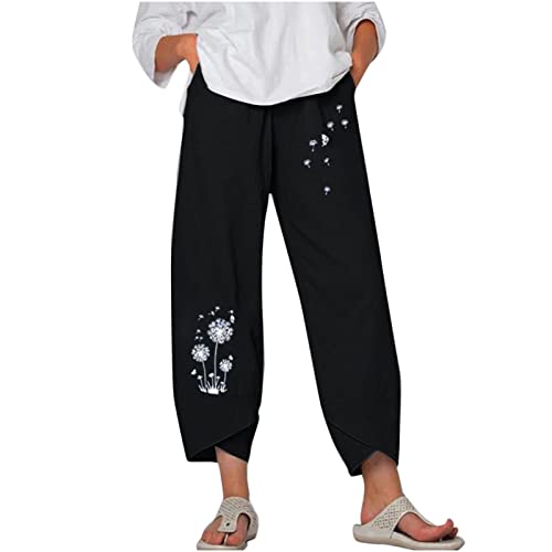 Pantaloni Donna Estivi Leggeri Pantaloni da Donna Estivi in Lino e Cotone Pantaloni Larghi Ragazza Eleganti Vita Alta Pantalone Largo Estivo Pantaloni Taglie Forti con Elastico in Vita Elasticizzati