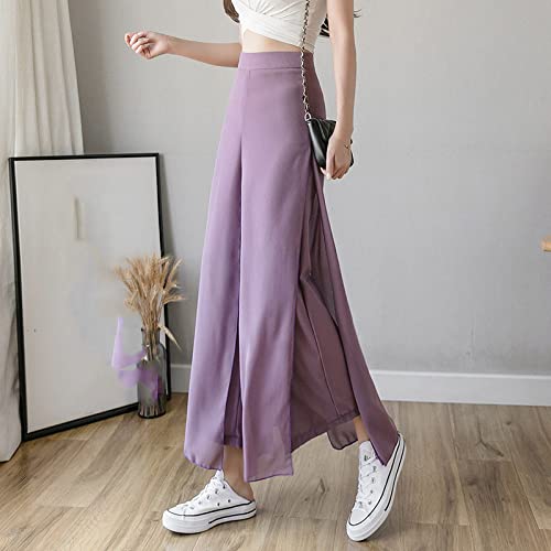 Pantaloni Donna Larghi, Pantaloni Viola Da Donna Pantaloni Dritti Con Cerniera Posteriore Con Cerniera Multistrato In Chiffon Tinta Unita Pantaloni Larghi A Gamba Larga Estivi Pantaloni Svasati A Vi