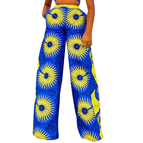 Pantaloni estivi da donna, leggeri ed eleganti, in stile bohémien, casual, a vita alta, traspiranti, per il tempo libero, da spiaggia, Blu, XL