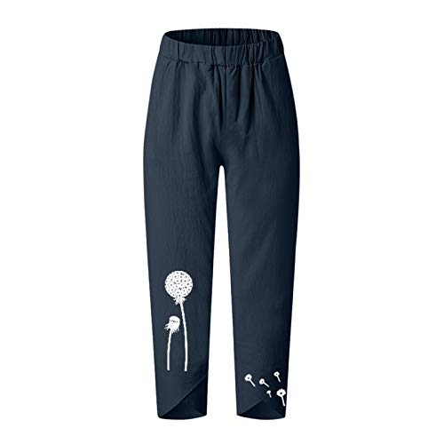 Pantaloni estivi da donna, in lino, larghi, a vita alta, traspiranti, con pompa, eleganti, in lino, da spiaggia, Blu scuro, S