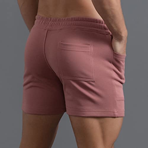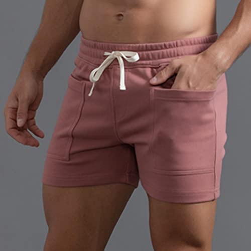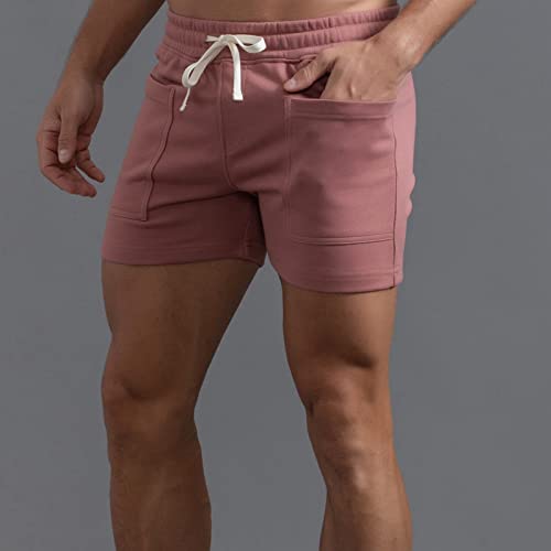 Pantaloni estivi da uomo, tinta unita, con tasche grandi, con coulisse, casual, per sport, corsa, dritto, da spiaggia, da uomo, da ciclismo, da uomo, Colore: rosso, M
