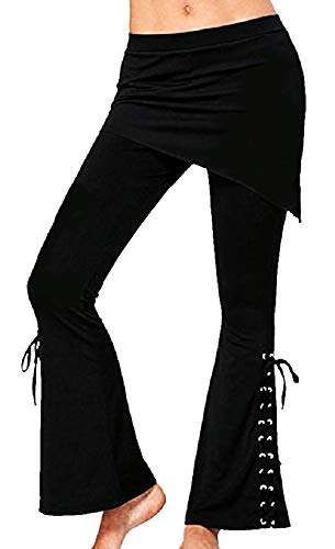 Pantaloni Gothic Donna - Leggings Gonna Donna - Elasticizzati - Vita Alta - Scampanati - Zampa di Elefante - Sport - Sportivi - Gotico - Colore Nero - Taglia L