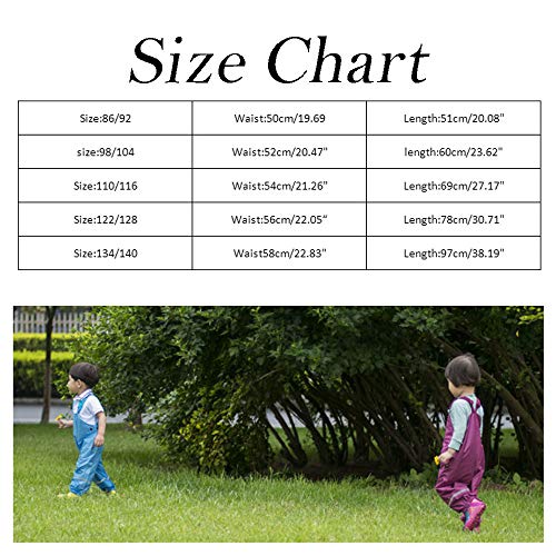 Pantaloni Impermeabili Bambino, Treer Unisex Pantaloni da Pioggia Trekking Traspirante Antivento Pantaloni di Fango per Ragazzi e Ragazze Rain Pants (86-92cm,Rosa Rossa)