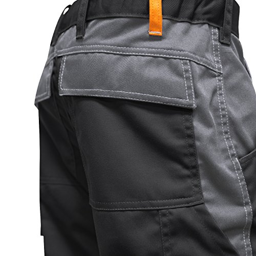 Pantaloni da Lavoro Berlin PRO, Tasca per Ginocchiere, Cerniera Lampo YKK + Bottone YKK - KERMEN - Made in EU - Nero-Grigio 60