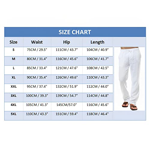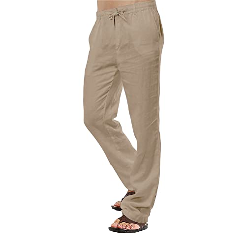 CTU Pantaloni di Lino da Uomo Pantaloni di Cotone Casual da Spiaggia Estivi Pantaloni Leggeri con Coulisse