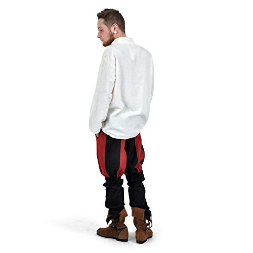 Pantaloni medievali Bertram da uomo - Lacci ai polpacci con tasche e bottoni - Rosso e nero - L