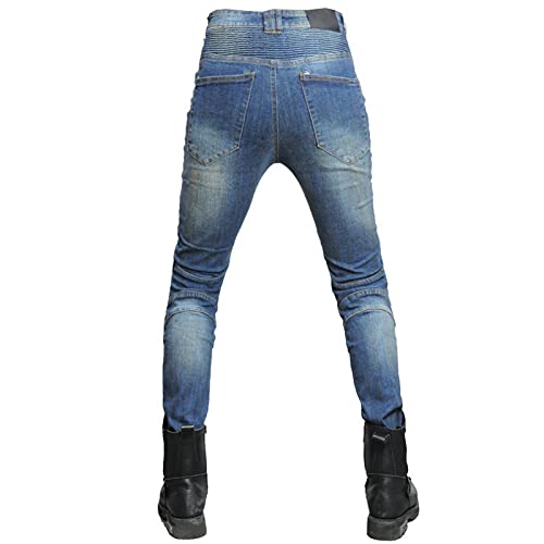 Tessuto di qualità: esterno in denim al 100%, realizzato in tessuto Kevlar di qualità, altamente resistente all'abrasione. Doppio strato nelle aree chiave. Fodera impermeabile traspirante. I jeans da moto alla moda possono essere indossati casual con scarpe basse o stivali e una maglietta rilassata, creando un effetto moda semplice ma protetto per te.