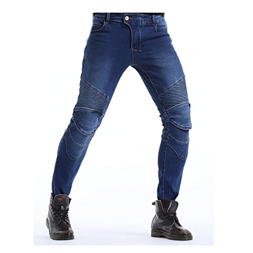 Pantaloni Moto Uomo, Impermeabile Elastico Jeans, Abbigliamento Biker E MTB, Tuta Moda Adatti Sia per Inverno Che per Estate, 4X Equipaggiamento di Protezione (Blue,XS)