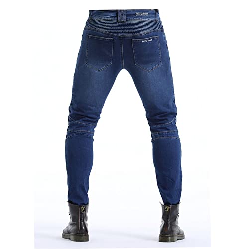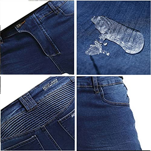 Pantaloni Moto Uomo, Impermeabile Elastico Jeans, Abbigliamento Biker E MTB, Tuta Moda Adatti Sia per Inverno Che per Estate, 4X Equipaggiamento di Protezione (Blue,3XL)