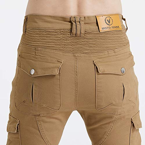 Pantaloni da Moto da Uomo, Jeans da Motociclista Elasticizzati Slim Fit da Uomo, Jeans alla Moda su Tutta La Vita, 4X Imbottitura di Protezione. (Khaki,XS)