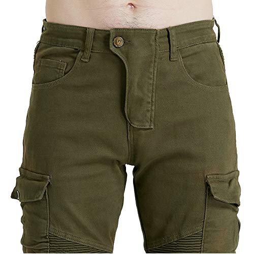 Pantaloni da Moto da Uomo, Jeans da Motociclista Elasticizzati Slim Fit da Uomo, Jeans alla Moda su Tutta La Vita, 4X Imbottitura di Protezione. (Army Green,M)