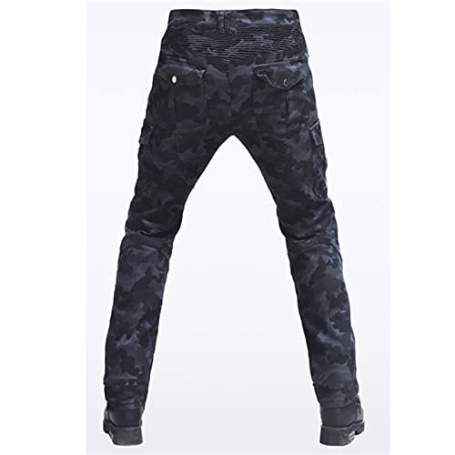 Pantaloni Moto Uomo, Slim Fit Elastico Jeans, Abbigliamento Biker E Mtb, Tuta Moda Adatti Sia Per Inverno Che Per Estate, 4X Equipaggiamento Di Protezione?Ginocchiere Estese? (Blue camouflage,S)