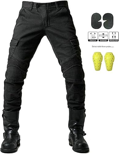 Pantaloni protettivi da moto da uomo, in kevlar traspirante e resistente all'usura, con 2 paia di protezioni rimovibili per fianchi e ginocchia, stile jeans (nero, 4XL)