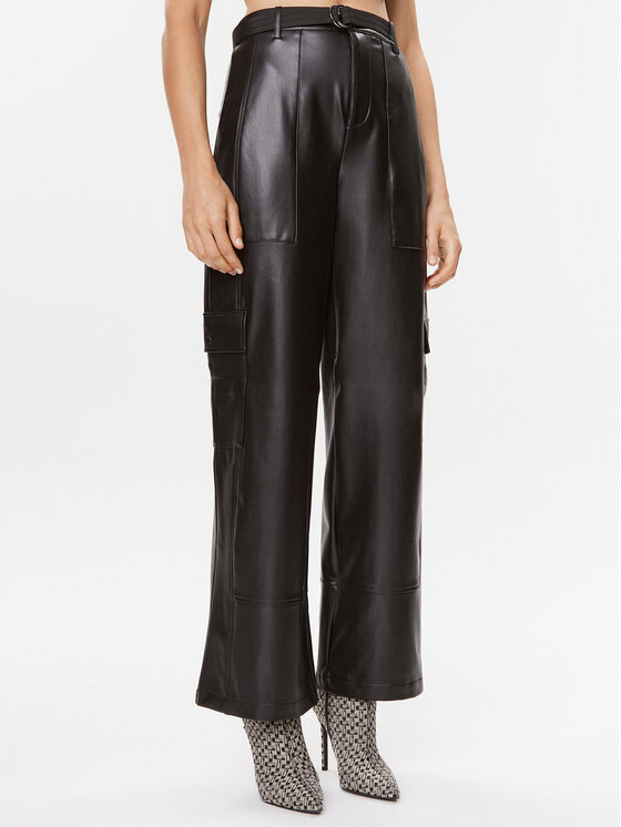 Guess Pantaloni in similpelle Gwen W3BB28 K8S30 Nero Straight Fit