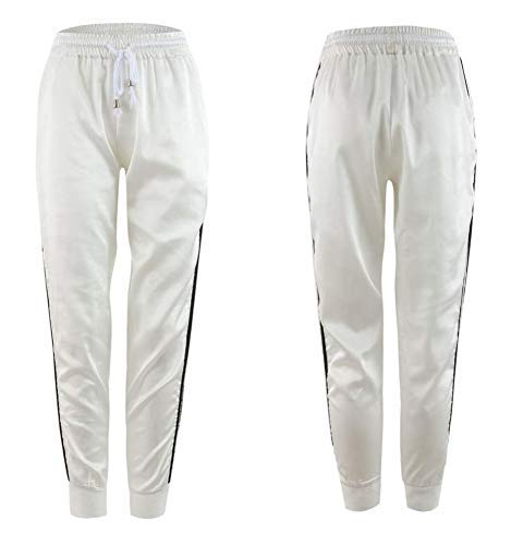 Pantaloni Sportivi Donna Eleganti Casual Moda Fitness Jogging Sport Tuta Coulisse Tasche Raso Lucidi Colore Bianco Taglia L e