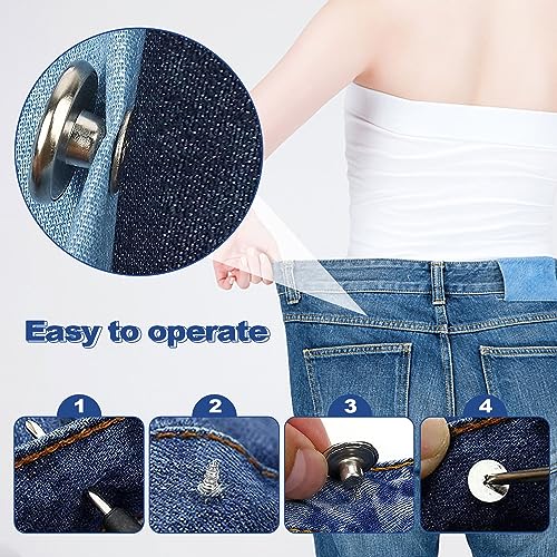 【Facili da usare】I bottoni per jeans non richiedono cuciture, sono facili da installare e da rimuovere, fanno sì che i pantaloni, le gonne e i jeans si adattino meglio e contribuiscono a ridurre la lunghezza dei vestiti, offrendo una grande comodità, dicendo addio ai vestiti che non si adattano e alla frustrazione che ne deriva!