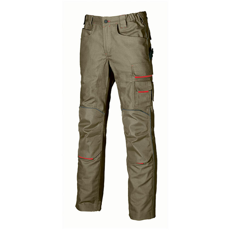 U-Power FREE Desert Sand Pantalone dotato di 2 ampie tasche anteriori, tasca laterale portautensili, tasca laterale multifunzionale con portacellulare, portabadge, 2 tasche posteriori con chiusura di sicurezza a velcro, 2 tasche porta ginocchiera con interno elasticizzato;