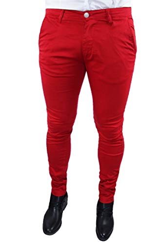 Pantaloni Uomo Battistini Jeans Sartoriali Casual Slim Fit Rosso Giallo Blu Grigio Nero Beige Marrone Aderente Estivo 100% Made in Italy Casual Eleganti in Cotone (50, Rosso)