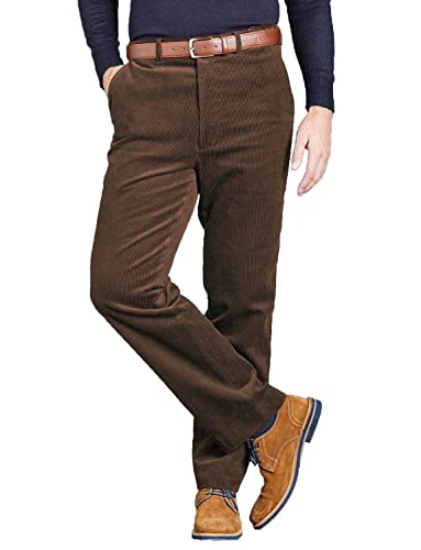 Pantaloni da uomo di lussuoso velluto di cotone a coste, con vita alta regolabile Brown 38W x 31L