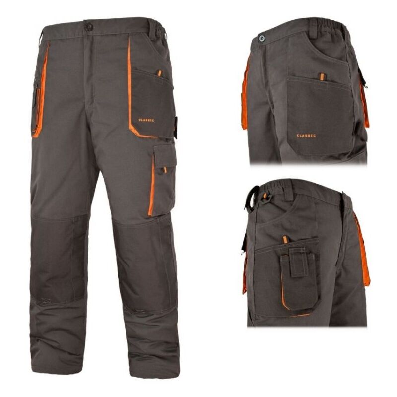 PANTALONI CLASSICI ISOLATI IN VITA Caratteristiche: Materiale 65% poliestere, 35% cotone, peso 270 g/m2 (+/- 10 g/m2) Fodera 100% poliestere, peso 180 g/m2 Fodera 100% poliestere Pantaloni con cerniera e bottone per chiudere sul davanti, doppie cuciture e numerose chiusure fisse per rinforzare le zone particolarmente a rischio strappi. 11 tasche, di cui 2 tasche per ginocchiere. Fascia elastica cucita lateralmente in vita