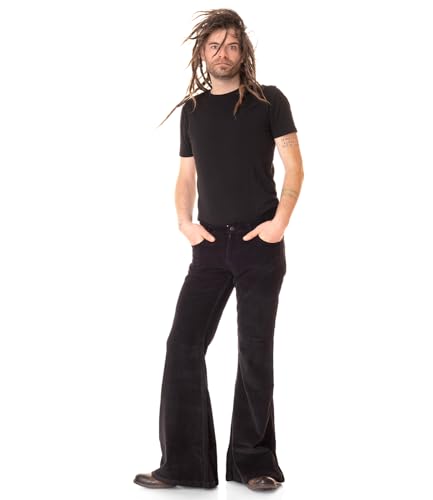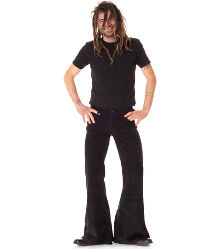 Pantaloni a zampa d'elefante da uomo, in cord, neri, stile anni ‘70, hippie Nero 33W x 36L