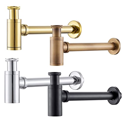 Panthem, sifone a P in ottone per lavabo, con attacco da 1 1/4”, regolabile, blocca lo sporco e previene i cattivi odori, ideale per lavabo del bagno e lavabo da appoggio, colore oro lucido