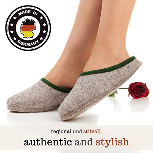 ERGONOMISKT FORMAD - Den extra tjocka, platta filtyttersulan dämpar gången mjukt och är skonsam för lederna - Passar en normal vrist - Filttofflor för män och kvinnor handgjorda i Tyskland