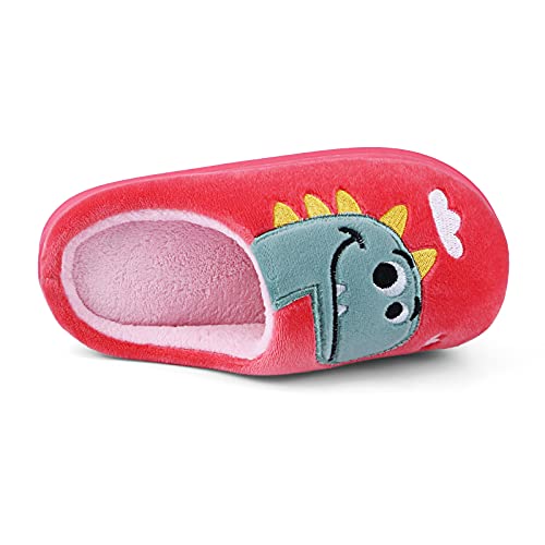 Pantofole Bambina Bambini Dinosauro Caldo Peluche Pantofole da Casa Inverno Scarpe per Bambino Rosso,34/35 EU