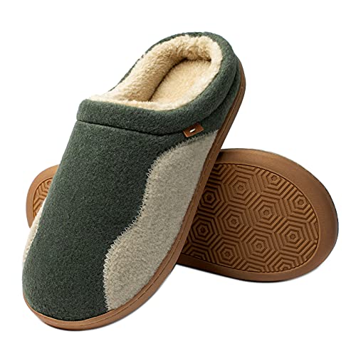 Pantofole in Cotone da Uomo, Ciabatte Calde Invernali con Memory Foam, Fodera Corta in Peluche, Ciabatte Casa Interno Esterno di Feltro con Suola Antiscivolo,Verde,39/40 EU