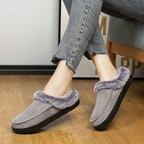 Pantofole Invernali Donna Pantofole in Memory Foam Comode Peluche Fodera Pantofole da Casa Antiscivolo Interno Esterno,Grigio Chiaro,3738 EU