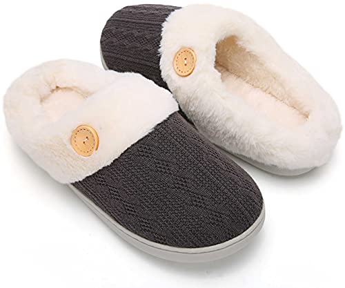 Pantofole Memory Foam Donna Uomo Ciabatte Autunno Inverno Peluche Antiscivolo Caldo da Casa Interno Esterno Comode Slippers Grigio 36/37