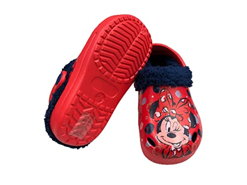 Pantofole ' Minnie Mouse ' invernali con pelliccia Scarpetta da giardino Leggera e Flessibile con Cinturino al Tallone Ruotante (RED, 26, numeric_26)