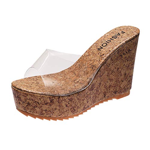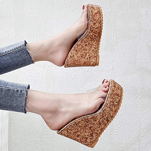 Pantofole Moda Donna Svaghi Zeppe Fondo Spesso Punta Tonda Scarpe Trasparenti (37,Cachi)